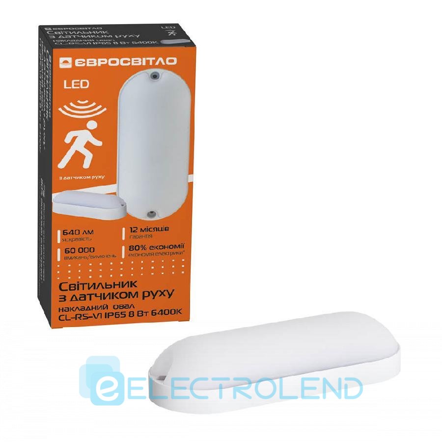 Світильник з датчиком руху LED накладний Євросвітло овал CL-RS-V1 IP65 8 Вт 6400К 000059214