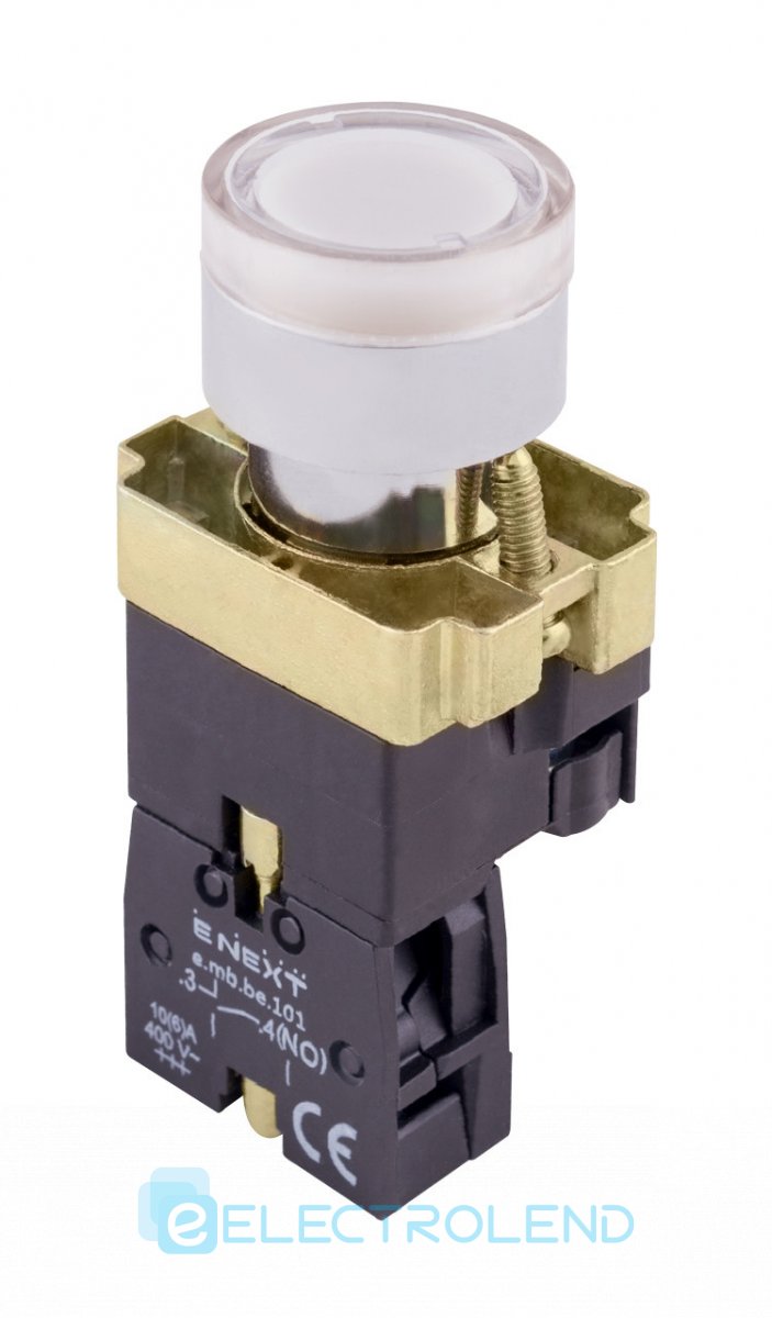 Кнопка з підсвіткою e.mb.bw3161 біла, без фіксації, 1NO p0810101 E.NEXT
