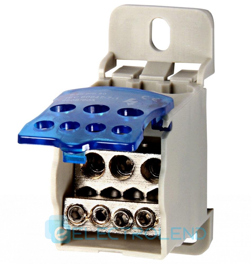 P0680001 Блок розподільчий e.sn.pro. 80 на DIN-рейку, 80А (вхід 1*6,,,16 кв.мм/вихід 4*2,5...6, 2*2,5...16 кв.мм)