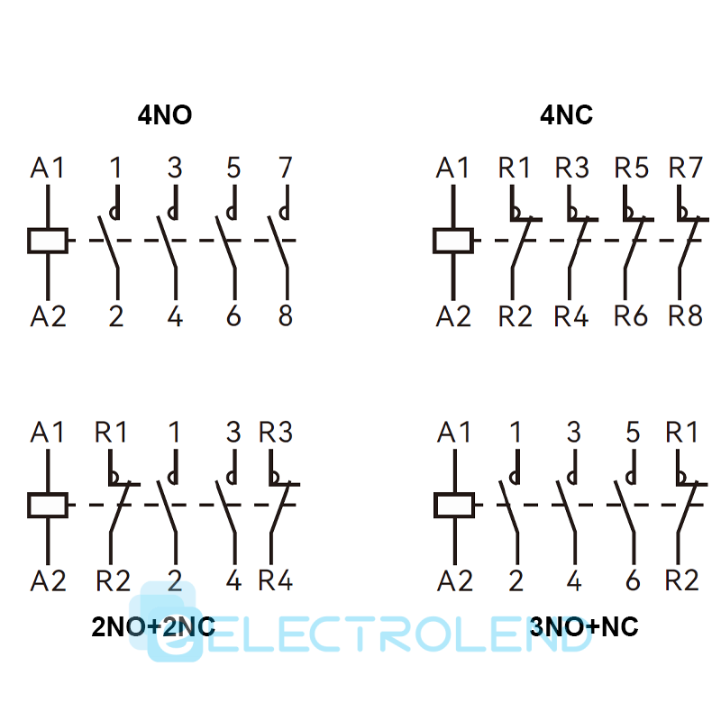 - Кількість і вид додаткових контактів: 3NO+1NC