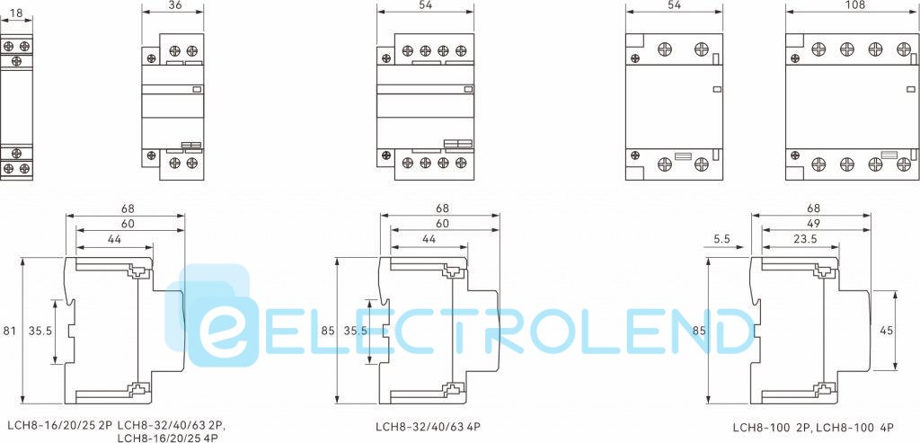 Модульний контактор LCH8-63 63A 4P 3NO+1NC TOSUNLux