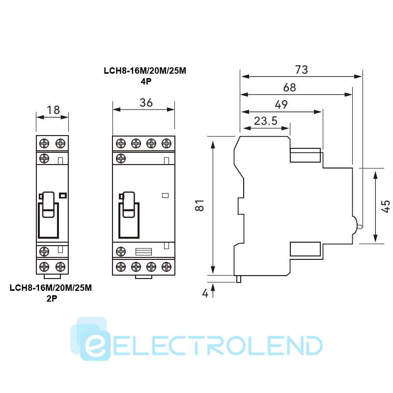 Модульний контактор LCH8-25M 25A 4P 4NO з ручним управлінням TOSUNLux