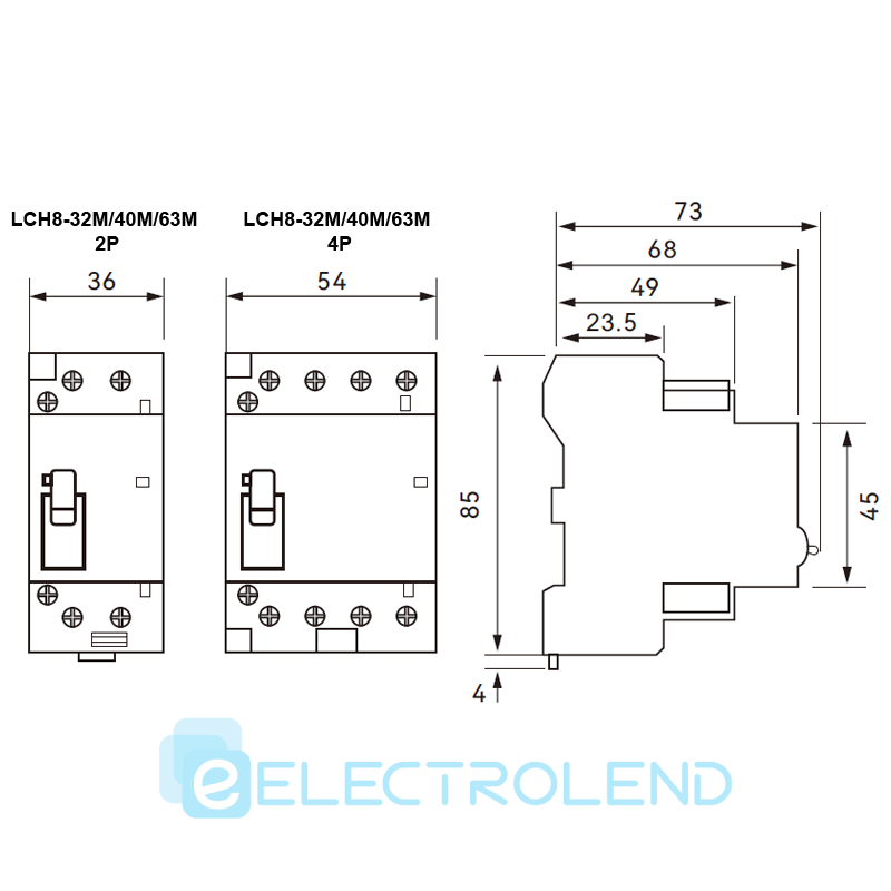 Модульний контактор LCH8-63M 63A 4P 4NO з ручним управлінням TOSUNLux