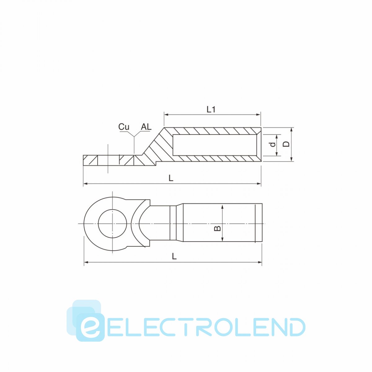 - Тип виробу: Наконечник кабельний мідно-алюмінієвий