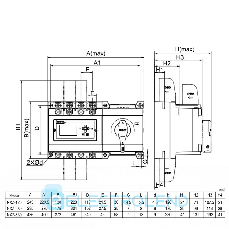 Моноблочний пристрій АВР NXZ-250/4A 250A 171614 Chint