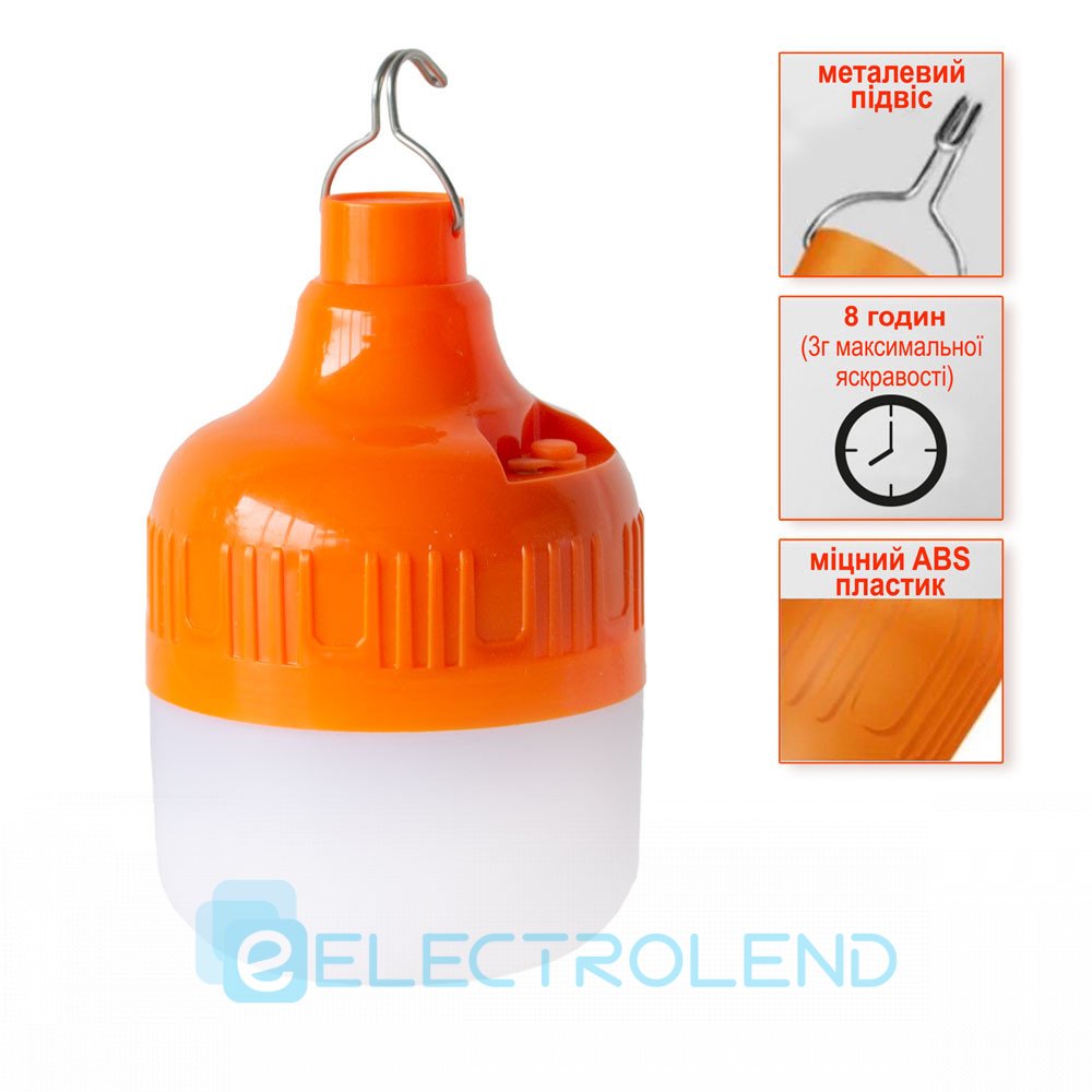 Ліхтар у вигляді лампи зручно підвішувати на вбудований в корпус гачок. А яскравий колір корпусу дозволяє швидше знайти світильник в багажнику чи в рюкзаку для походів.