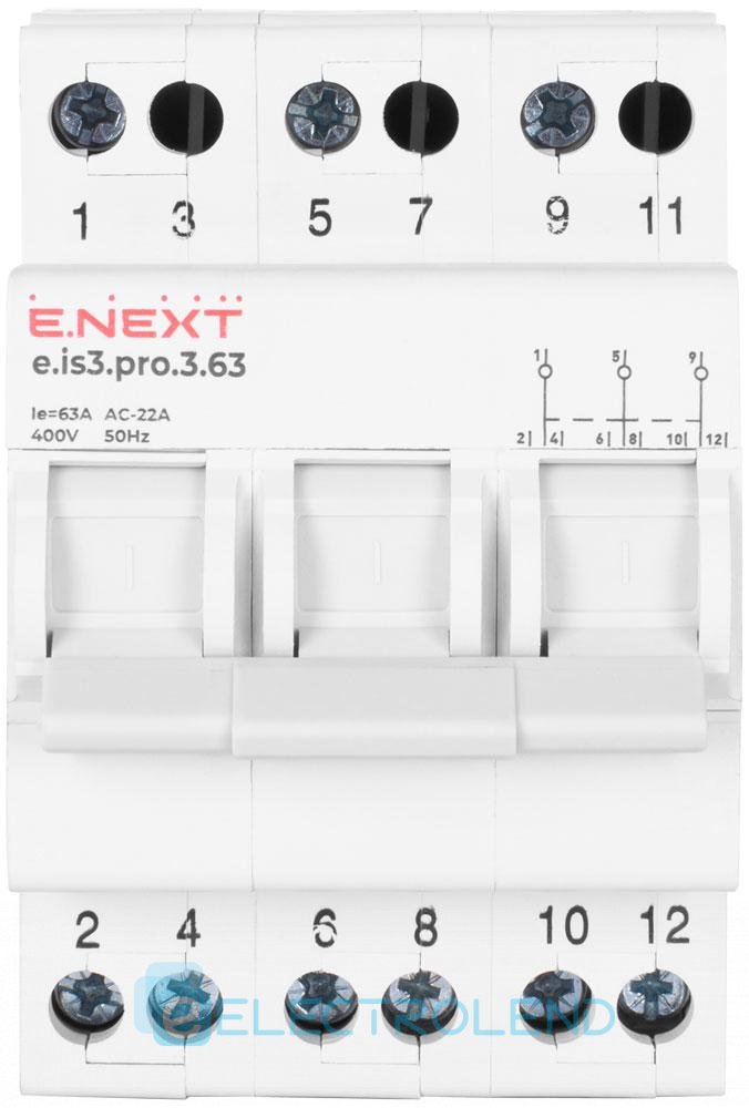 p008015 Вимикач на DIN-рейку на три положення e.is3.pro.3.63, 3р, 63А E.NEXT