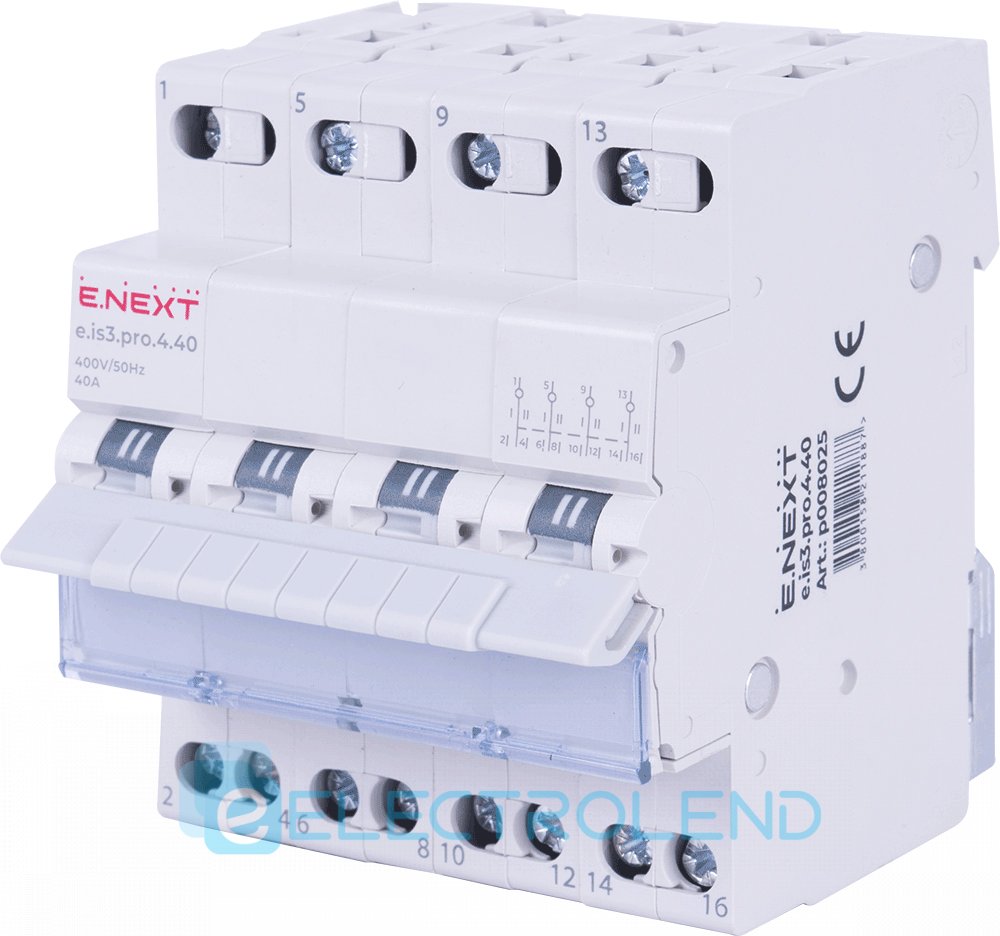 P008025 Вимикач на DIN-рейку на три положення e.is3.pro.4.40, 4р, 40А E.NEXT