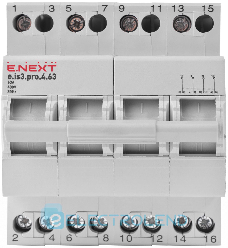 p008016 Вимикач на DIN-рейку на три положення e.is3.pro.4.63, 4р, 63А E.NEXT