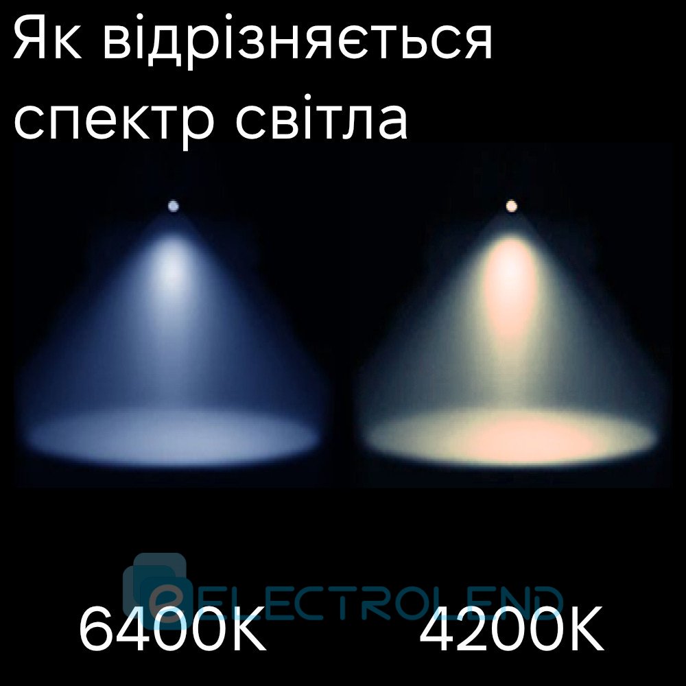Спектр 4200К відповідає денному світлу, що підвищує продуктивність людей, які працюють весь робочий день в умовах штучного освітлення. Також він створ/є більш затишну атмосферу, що актуально для торгових приміщень з високими стелями або складів, на яких бувають клієнти.