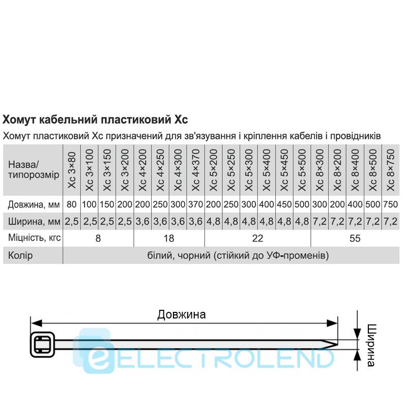 - Тип виробу: Хомут кабельний