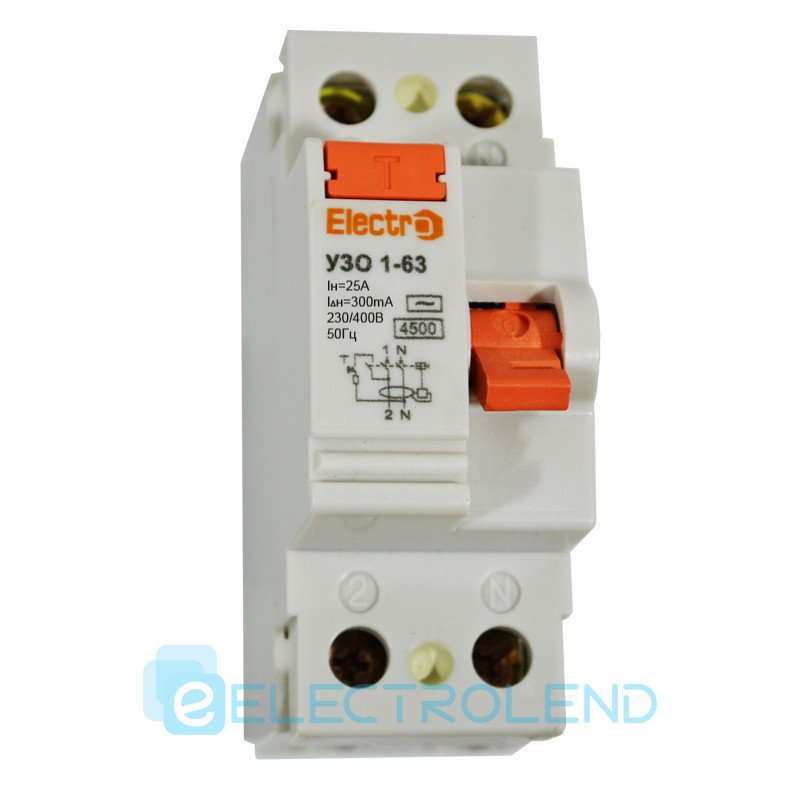 Пристрій захисного відключення ПЗВ1-63, 2P, 25А, 100мА, 4,5kА, тип АС, Electro