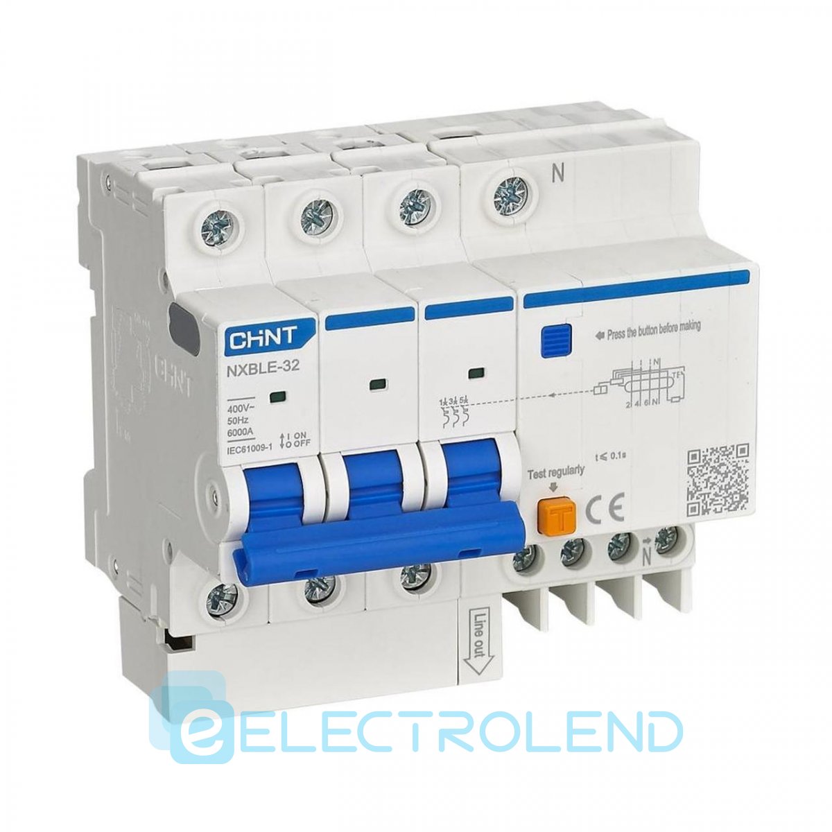 819512 Диференційний вимикач NXBLE-32 3P+N C16 30mA, ел. тип АС, 6kA Chint