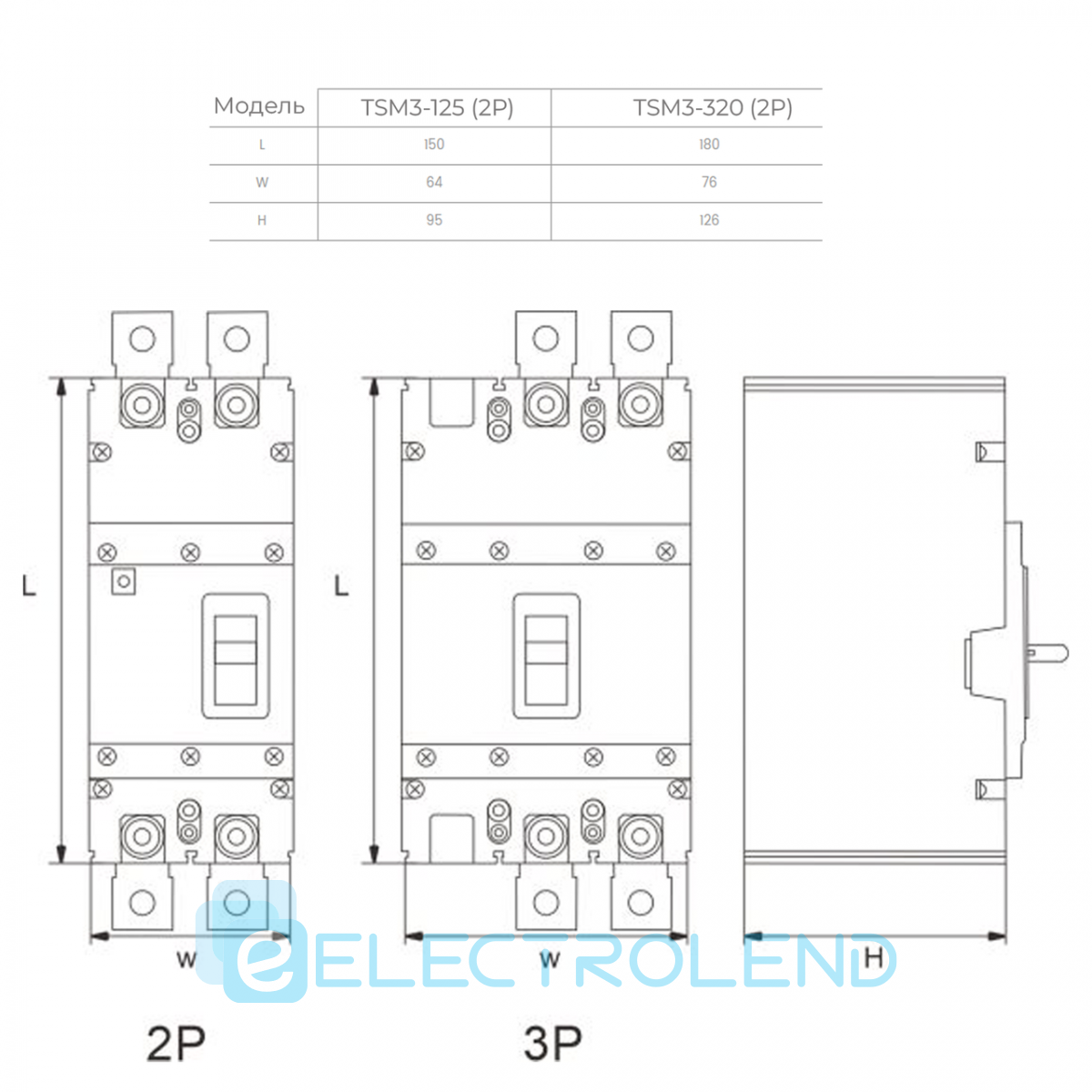 Модель | TSM3-125DC | TSM3-320DC | TSM3-400DC | |||||||