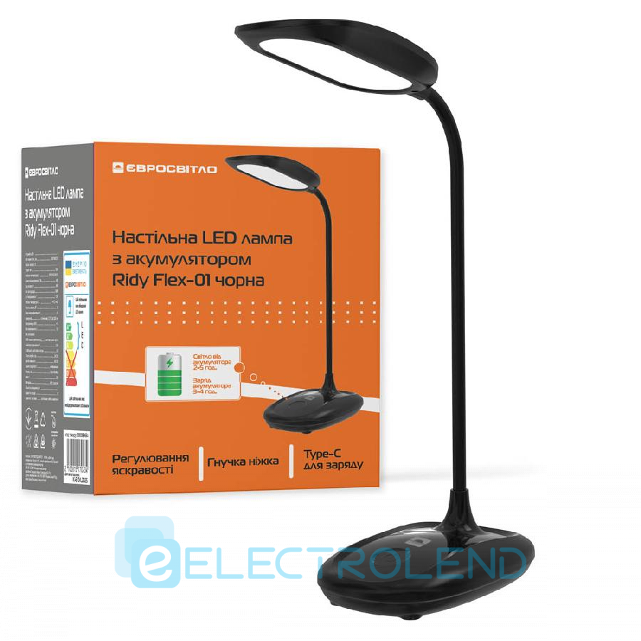 Характеристики товара Настільна LED лампа з акумулятором Ridy Flex-01 чорна