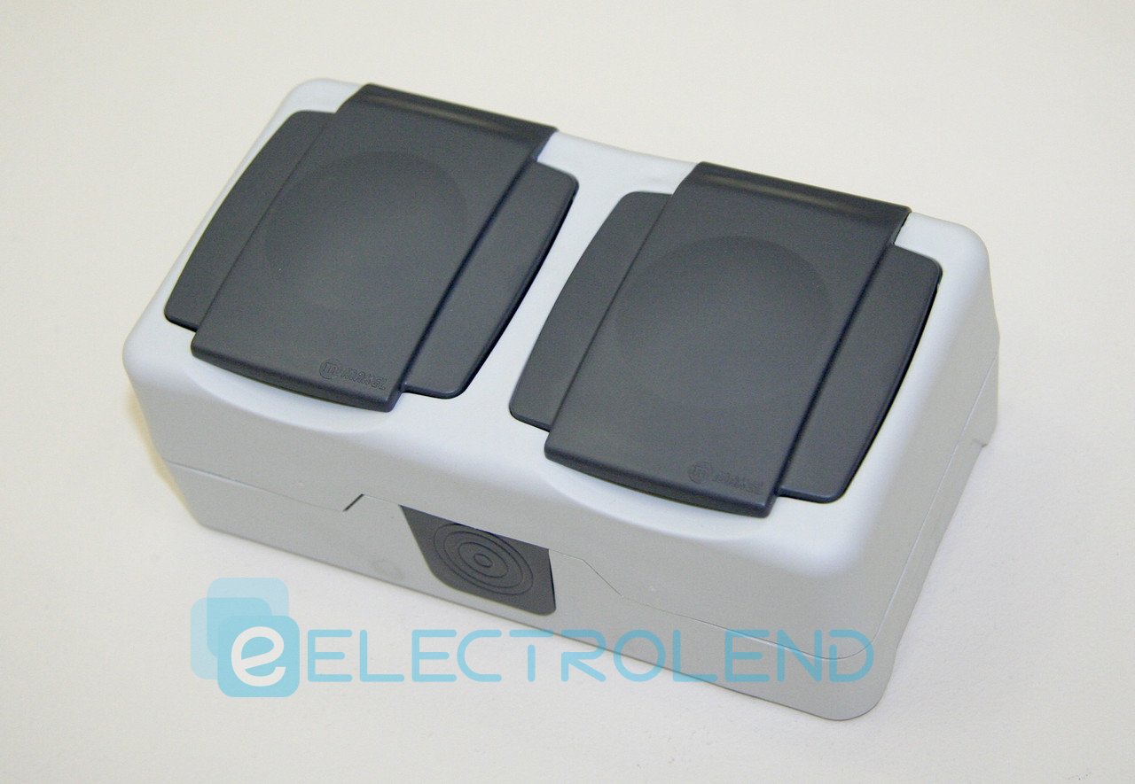 Розетка 2-на з заземленням та кришкою IP44 сірий 37064201 Makel