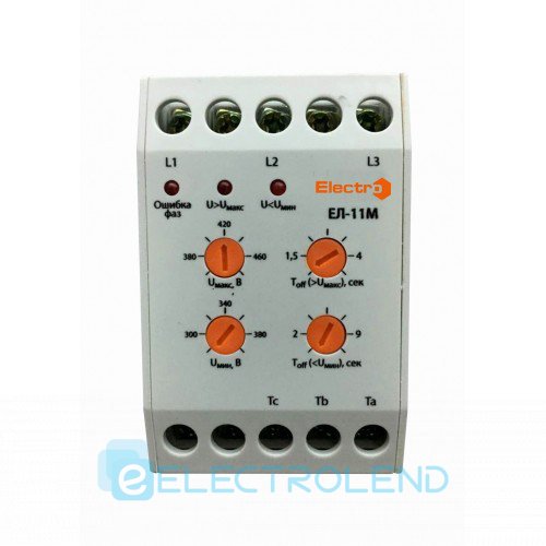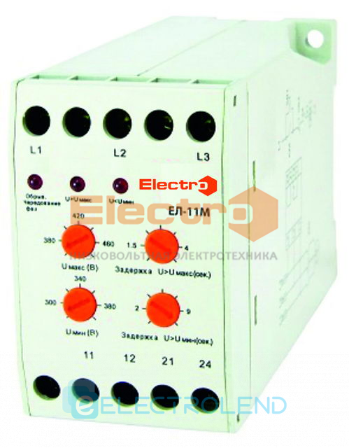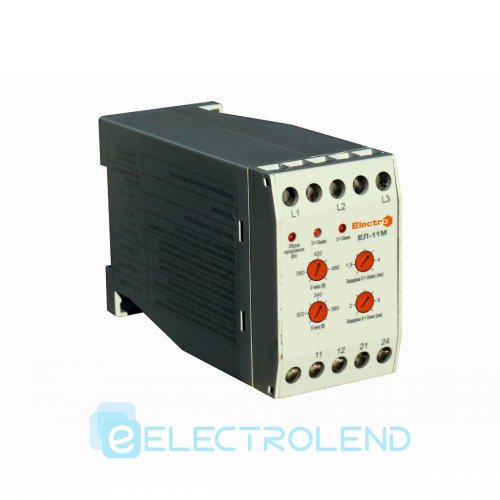 Реле ЕЛ-11М призначено для захисту електродвигуна або іншого електроприладу, який живиться від трифазної мережі, у випадках зменшення напруги нижче уставки, збільшення напруги вище уставки, відсутності хоча б однієї з фаз (обрив фази) зворотнього порядку чергування фаз.