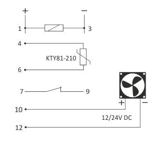 Регулятор призначений для безпосереднього керування швидкістю обертів вентиляторів 12/24В постійного струму в шафах керування (або подібних інсталяціях) у функції температури.