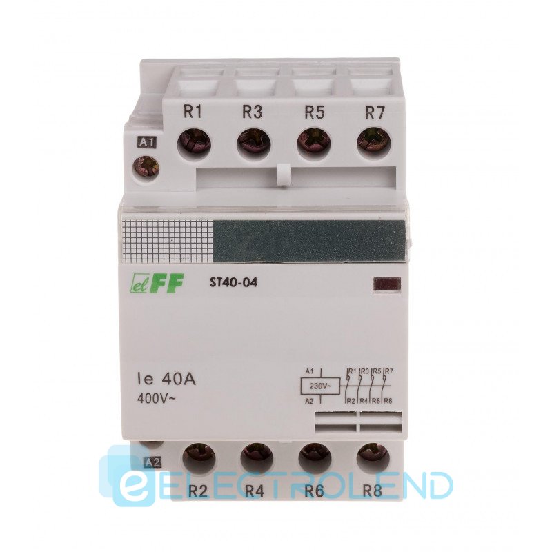ST40-40 | 4НО | 40 А. | 230 В змінного струму | 6,4 Вт | 3 | 241 г | 16 мм2 |