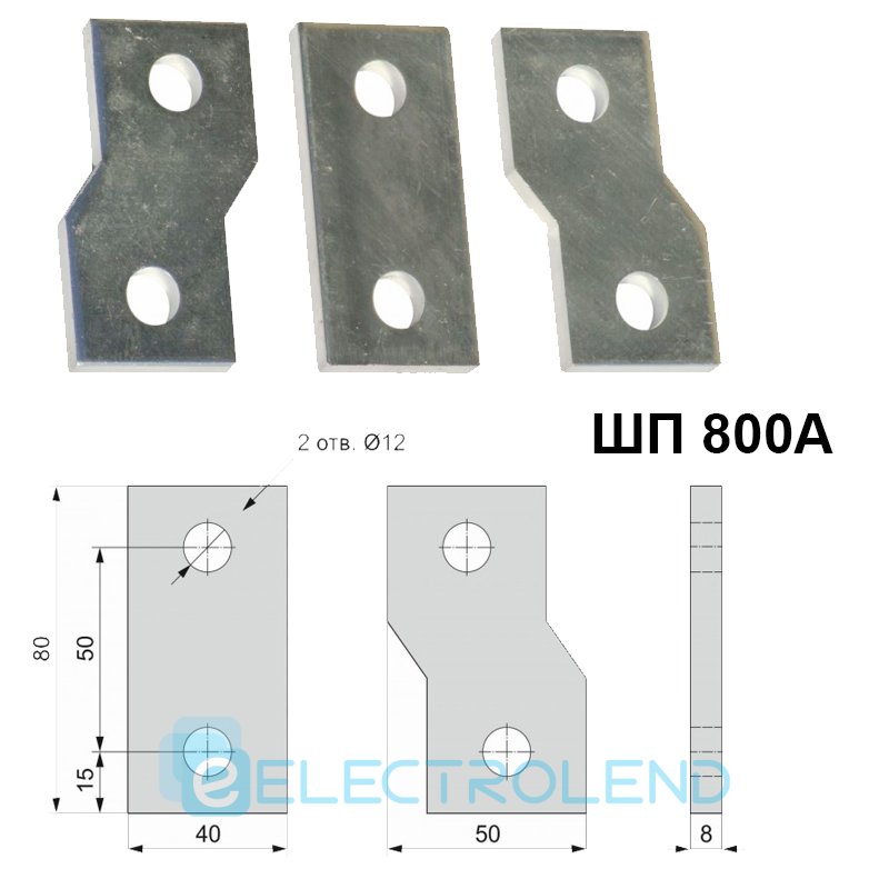 Шина перехідна габарит 800А луджена мідь комплект 3шт.