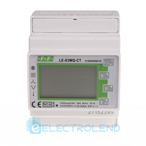 Лічильник електроенергії трифазний LE-03МQ-CT з MODBUS RTU, з аналізатором 100(5)А F&F