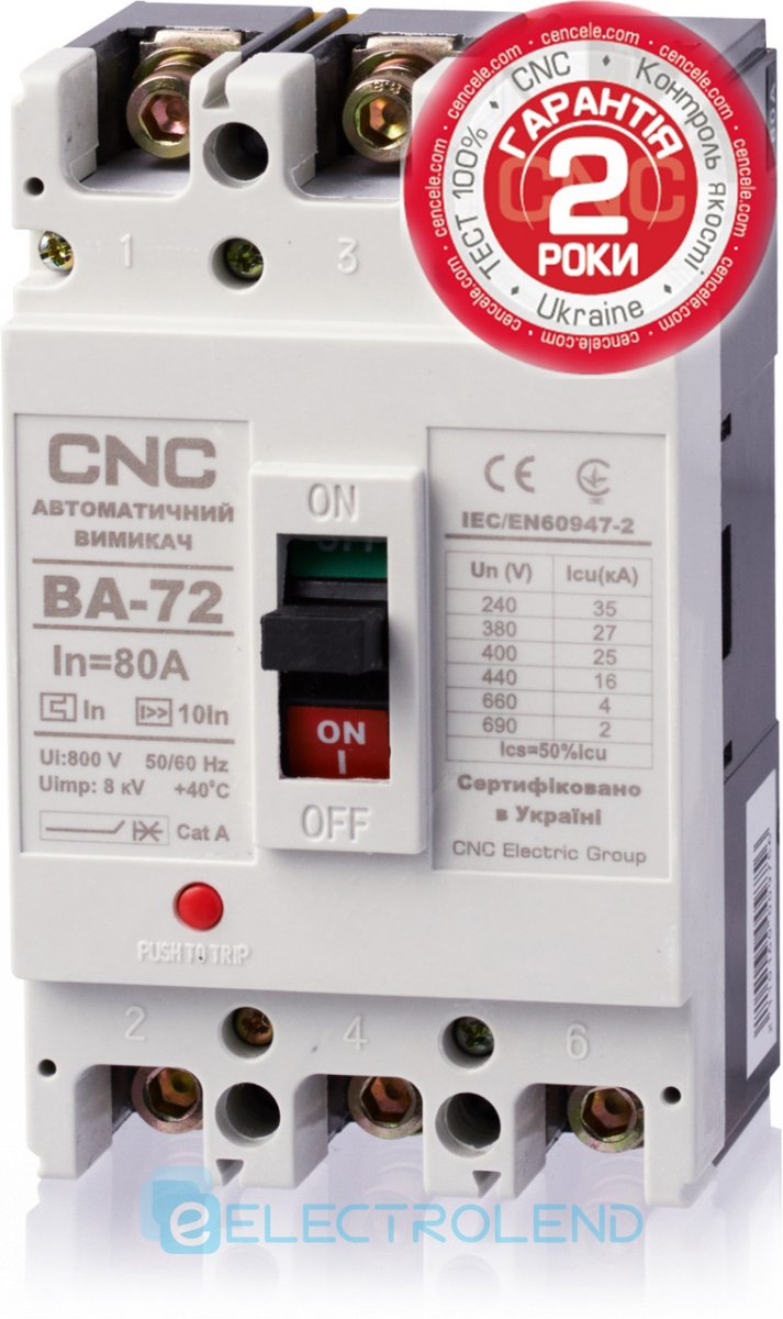Автоматичний вимикач ВА-72, 16А, 3Р, 380B, 30кА, CNC
