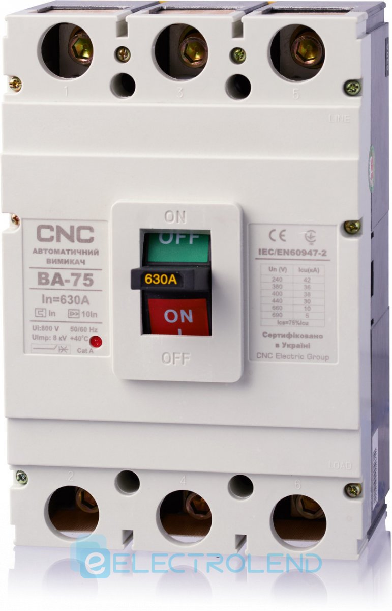 Автоматичний вимикач ВА-75, 500А, 3Р, 380B, 55кА, CNC