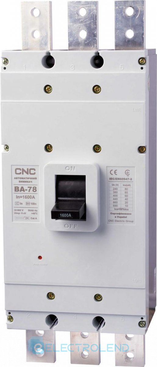 Автоматичний вимикач ВА-78, 1250А, 3Р, 380B, 70кА, CNC