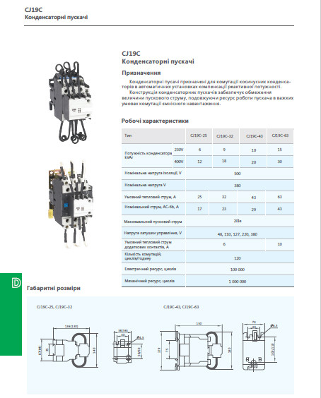 Пускач конденсаторний CJ19C-D2511, 25А, 400В, 12кВАр, АС220В, CNC