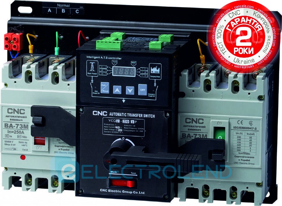 Автоматичний ввід резерву YCQ2CB-1600, 1600А, 3Р, 380В, 70кА, CNC