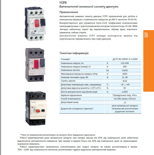 - Тип виробу: Автомат захисту двигуна