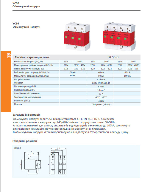 Обмежувач імпульсних перенапруг на DIN-рейку YCS6-B, 2Р (1P+N), 385V, 30—60 кA, тип В, CNC