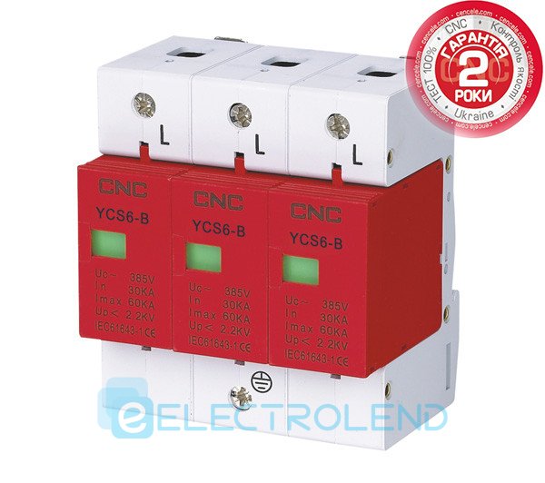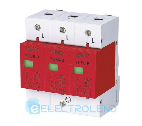 Обмежувач імпульсних перенапруг на DIN-рейку YCS6-B, 3Р, 385V, 30—60 кA, тип В, CNC