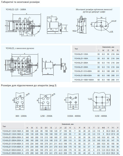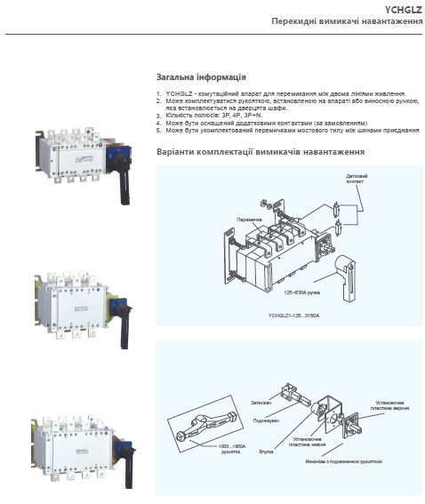 Вимикач-роз'єднувач перекидний YCHGLZ1-2500А, 3Р, 400V, CNC