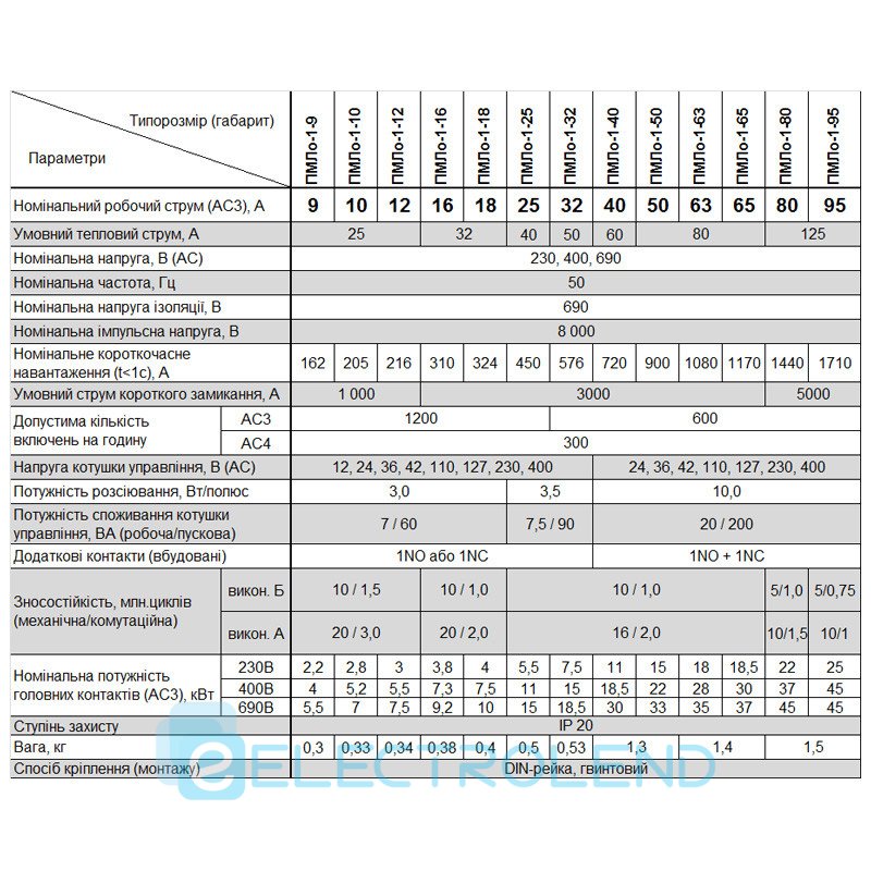 Напруга котушки управління, У | 24, 36, 110, 230, 400 | |||