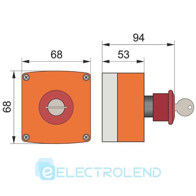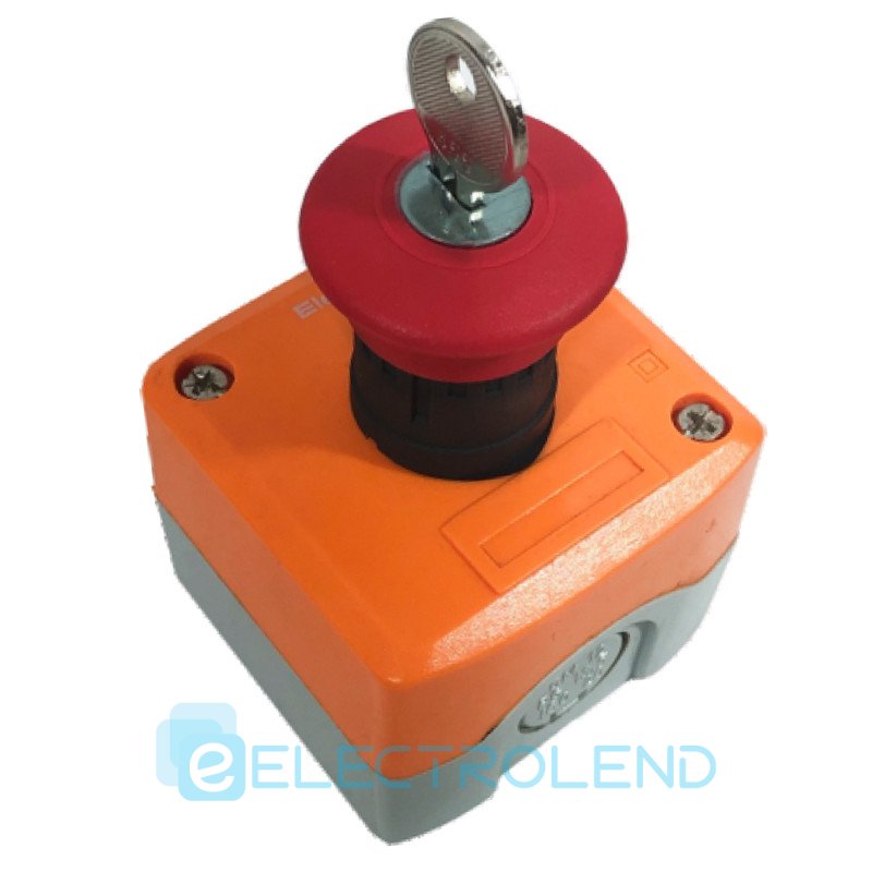 Кнопковий пост, АВАРІЙНИЙ СТОП, з фіксацією, та ключем, AC380/DC110, (кнопка "грибок" PB2-BS142, NC), жовтий корпус, 230В, IP54