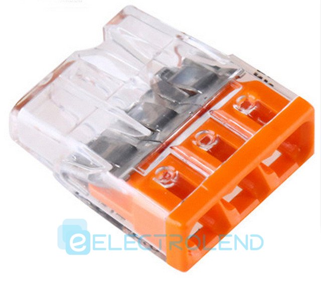 Клема WAGO на 3 проводу самозажимная пружинна прозора/помаранчева (2273-203)