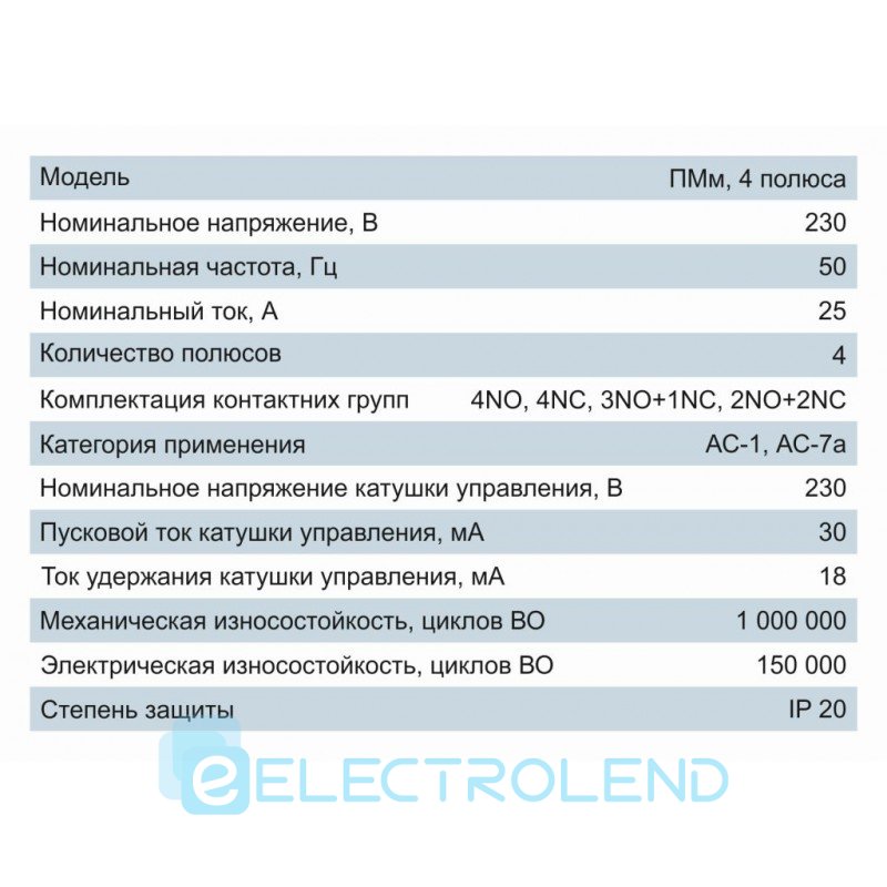 Пускач модульний ПМм 4P 25A 4NC 400В Electro