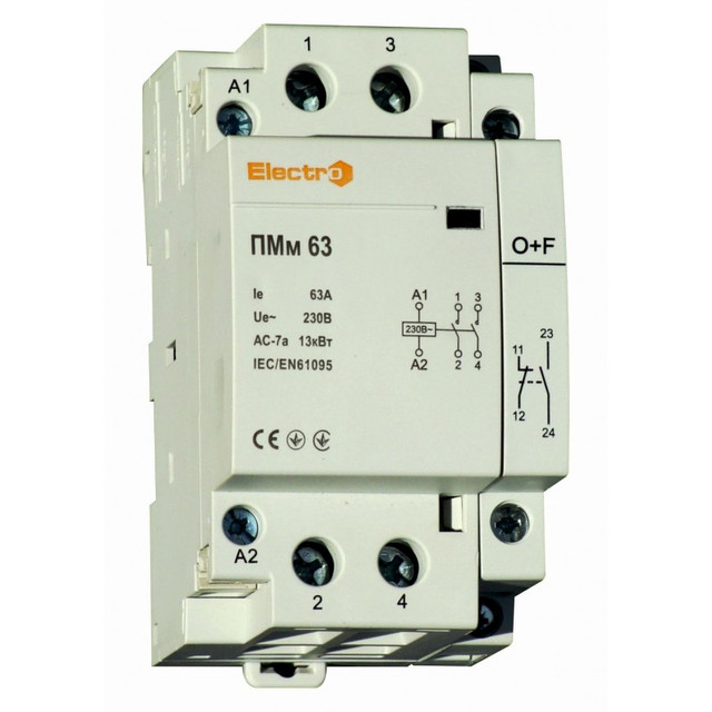 Модульний контактор призначений для комутації слабоиндуктивных навантажень в мережах змінного струму напругою до 400 В з частотою 50 Гц і номінальним струмом до 63 А. Застосовується для включення-відключення потужних побутових приладів (нагрівачі, насоси, вентилятори, компресори, мережі освітлення і т. д.) і використовуються в схемах автоматичного керування поливом, опаленням, вентиляцією тощо).