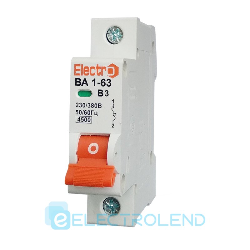 Модульний автоматичний вимикач ВА 1-63 призначений для захисту електричних ланцюгів змінного струму частотою 50 Гц напругою до 400 В від перевантаження і струмів короткого замикання, а також для оперативних включень і відключень електричних ланцюгів на промислових і побутових об'єктах.