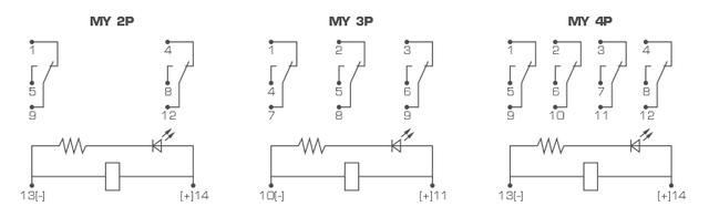 Реле проміжне з індикатором MY 4P, AC 220V, N, 3А, CNC
