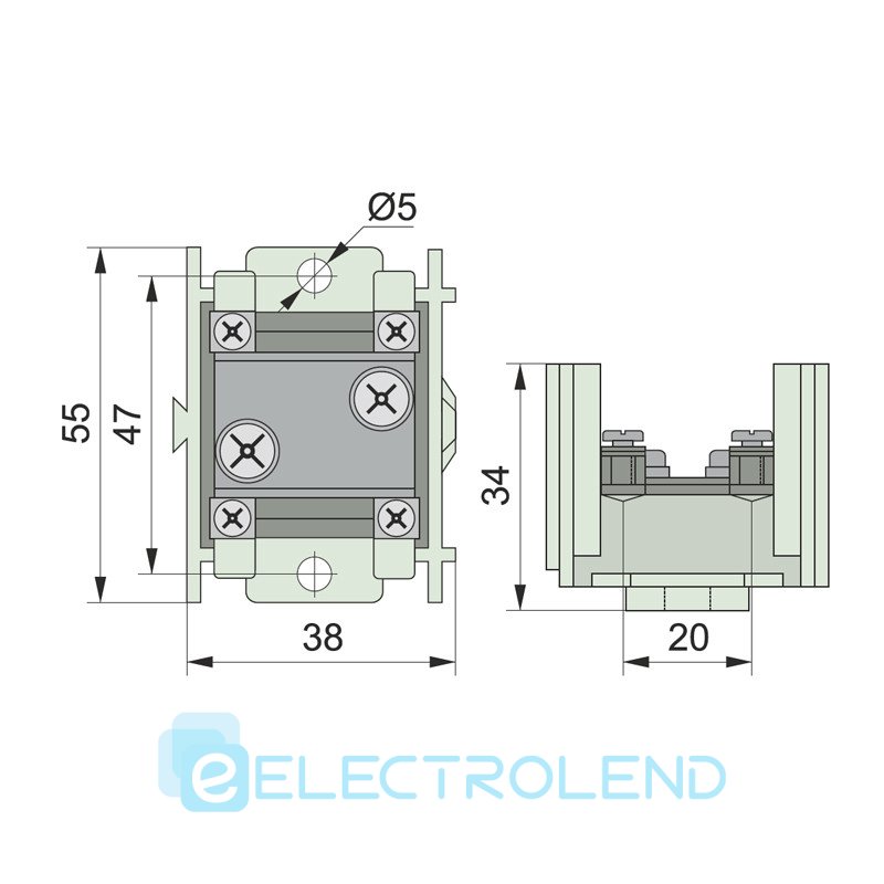 Призначений для підключення до транзитних струмопровідних ліній декількох проводів за допомогою зажимів. Використовуються для безпечного і компактного підключення фазних, нулових та захисних проводі різного перерізу.
