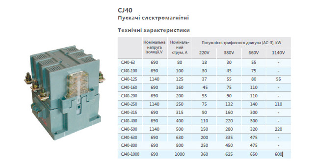 Пускач електромагнітний CJ40-125, АС-3, 65кВт, 3NO+3NC, 125A, котушка 110B, CNC