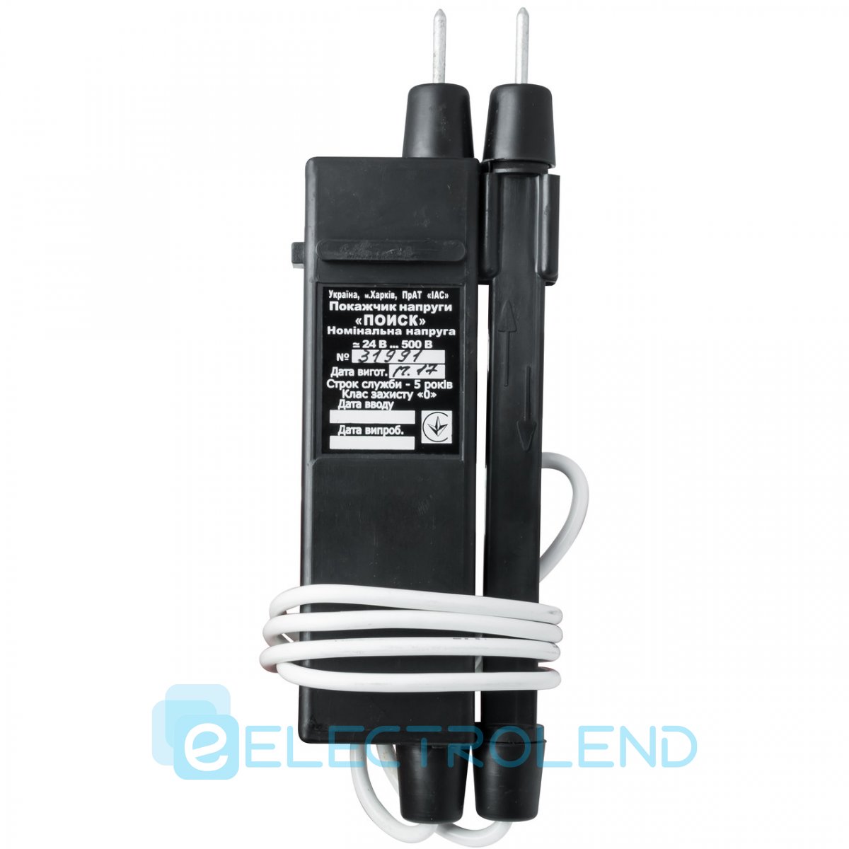 Покажчики напруги типу «Пошук» (далі по пошуку — покажчик) призначені для контролю наявності напруги змінного (50 Гц) і поостоянного струму. Контроль здійснюється за допомогою яскравих світлодіодних індикаторів. Забезпечують ступеневу індикацію. Виконані в зручному для візуального та звукового контролю ударостійкому пластиковому корпусі.