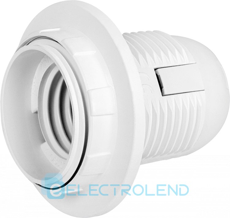 Патрон пластиковий e.lamp socket with nut.E27.pl.white, Е27 з гайкою, білий s9100016