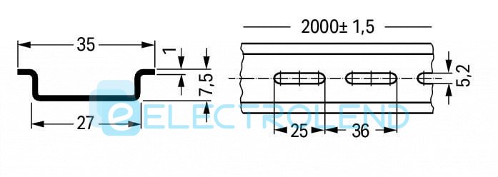 Перфорована монтажна DIN рейка Wago 210-112 35х7, 5мм 2м