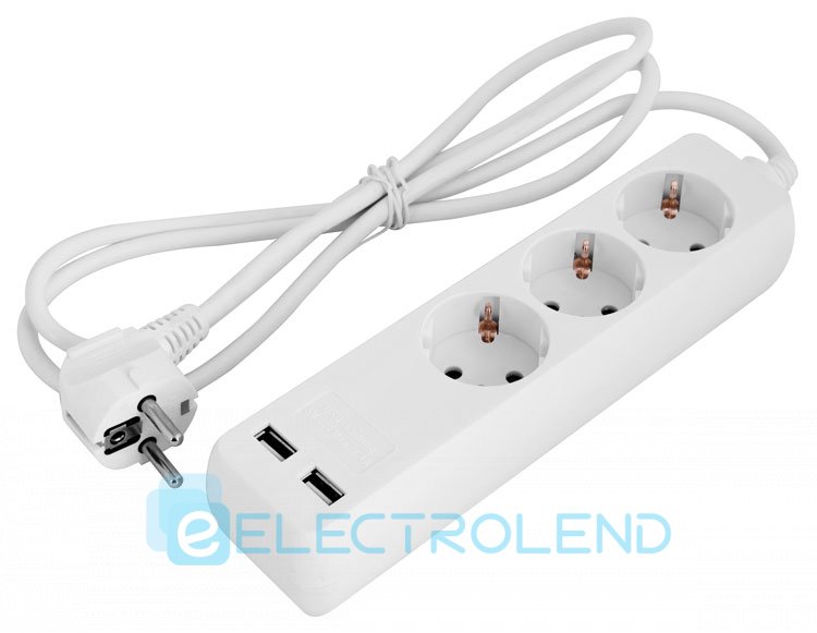 Подовжувач e.es.3.1.5.z.b.2.usb 3 гнізда, 1.5м, з з/к з USB-зарядкою, baby protect s042128