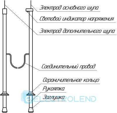 Прилад являє собою завершений виріб, що складається з двох частин: основного щупа та додаткового щупа.