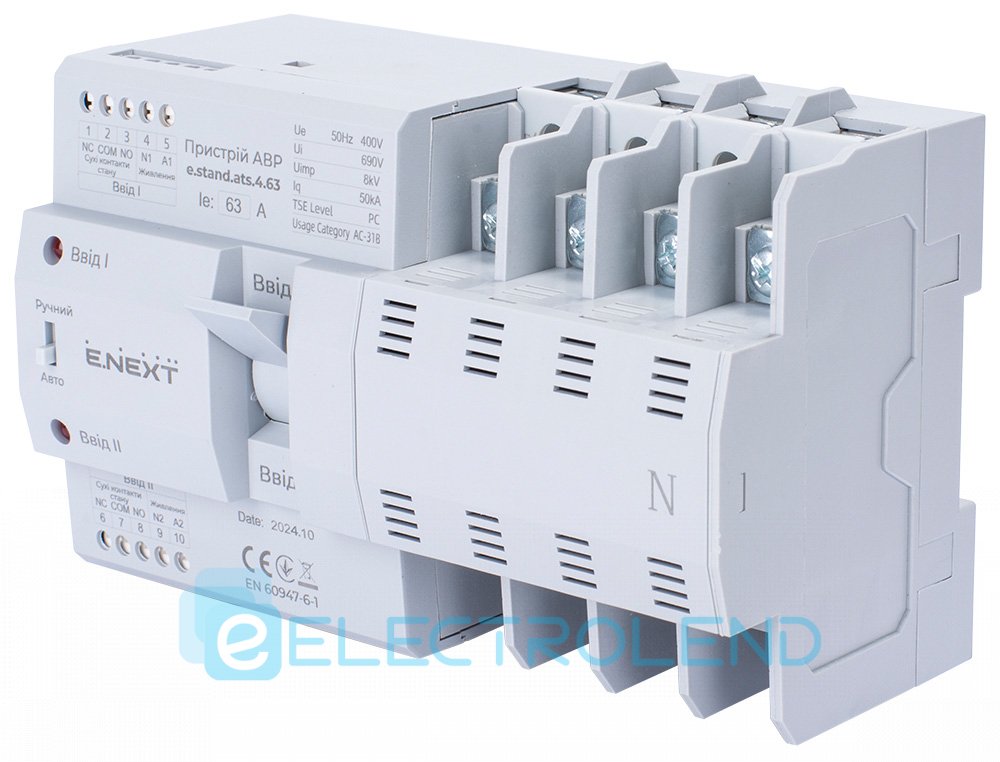 Пристрій АВР модульний e.stand.ats.4.63, 4p, 63А s088002