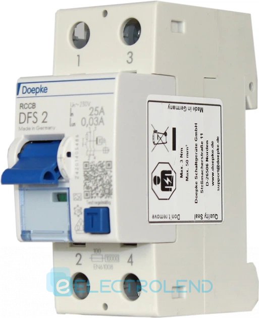 Пристрій захисного відключення Doepke DFS 1Р+N 40А АС 100мА